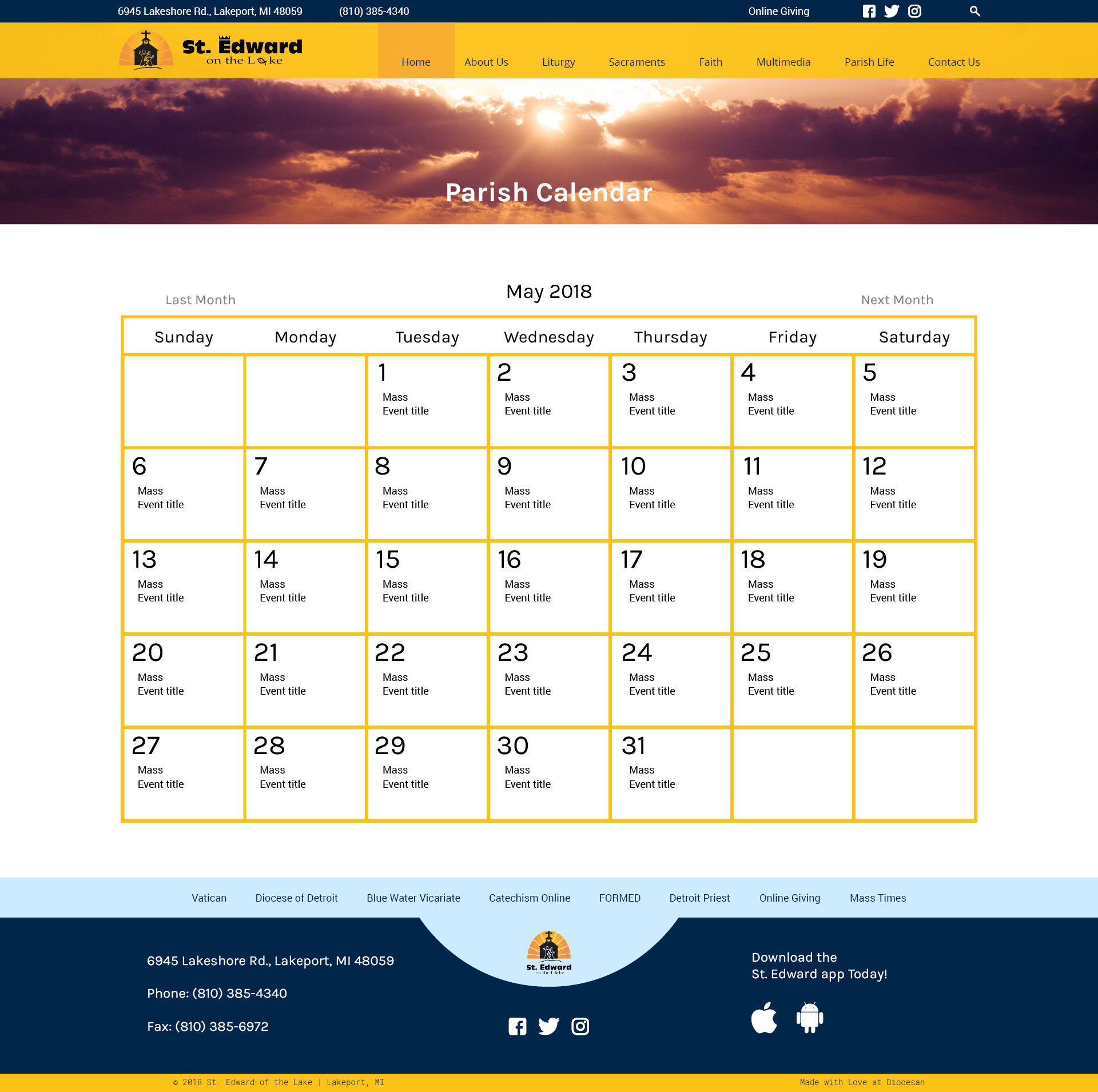 The parish events section also includes a button to go to the full calendar, at the moment the events are directly view able from the homepages, but we can make that happen!