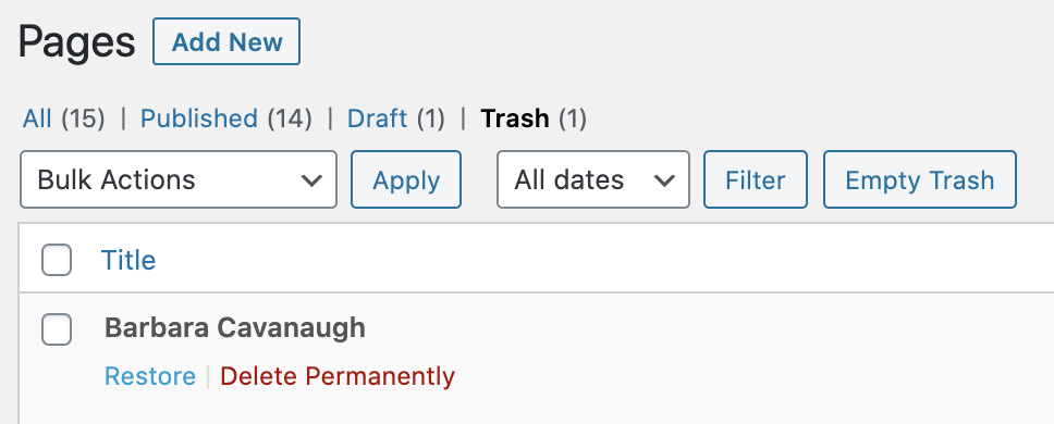 Remember, pages have revisions (under Document settings) for you to go back to an earlier saved version and any page trashed has 30 days to be restored from the trash.