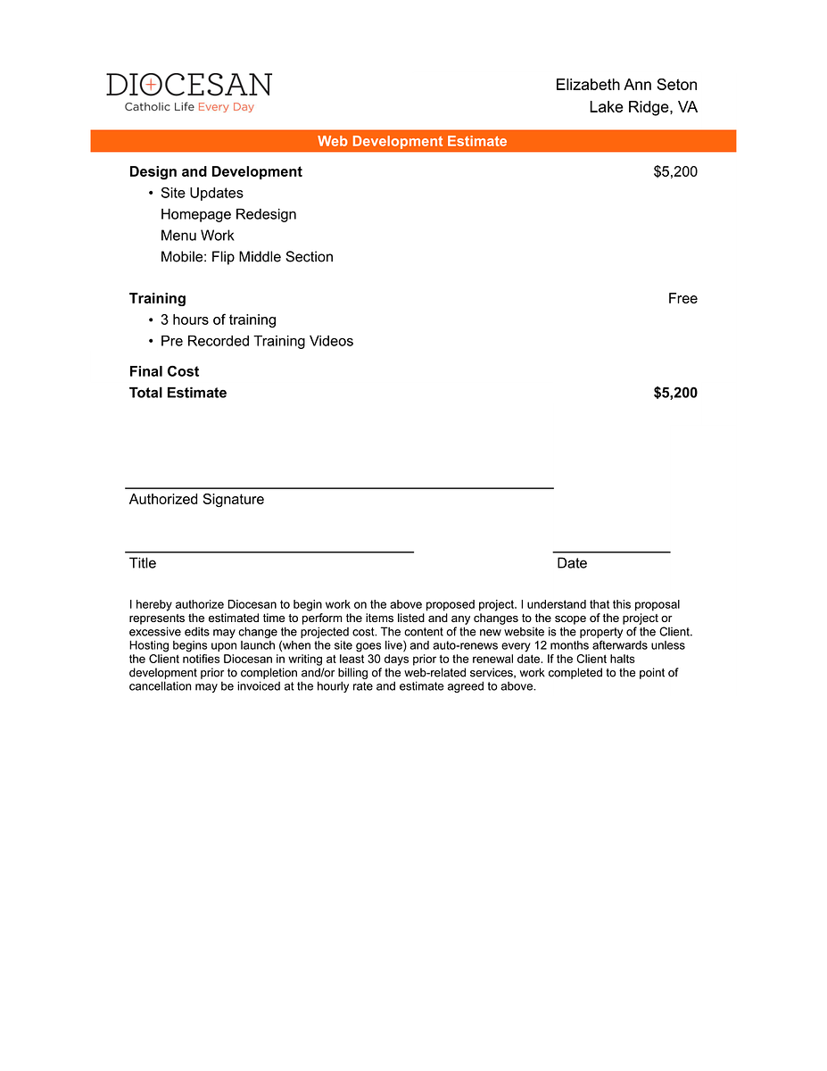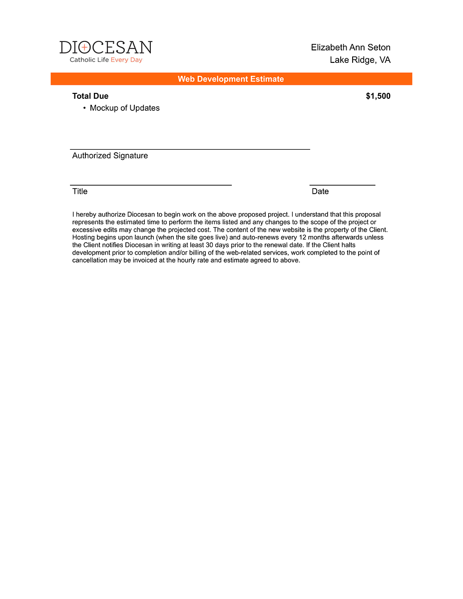 The Mockup Proposal is the cost to create a design for the updates and the XD file. The XD file is the design of the updates allowing you to view them as a desktop view, tablet view, and mobile view. You will have the opportunity to discuss the design with the designer. Any change requests to the design could incur an additional cost. The timeline to create the XD file is approximately 2 weeks. Additional conversations regarding the design could impact the length of the project - keep in mind that development can't begin until the design is approved. If the conversations begin to slow the process, we will advise of the impact to the timeline.