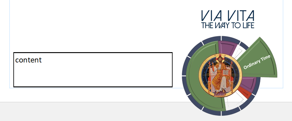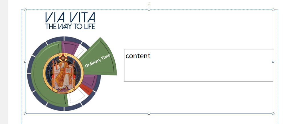 the via vita landing page will have the liturgical wheel as the image with the ability to have text (content) above, to the right/left, or below the image. For mobile responsiveness, the image (liturgical wheel) will always be displayed first.