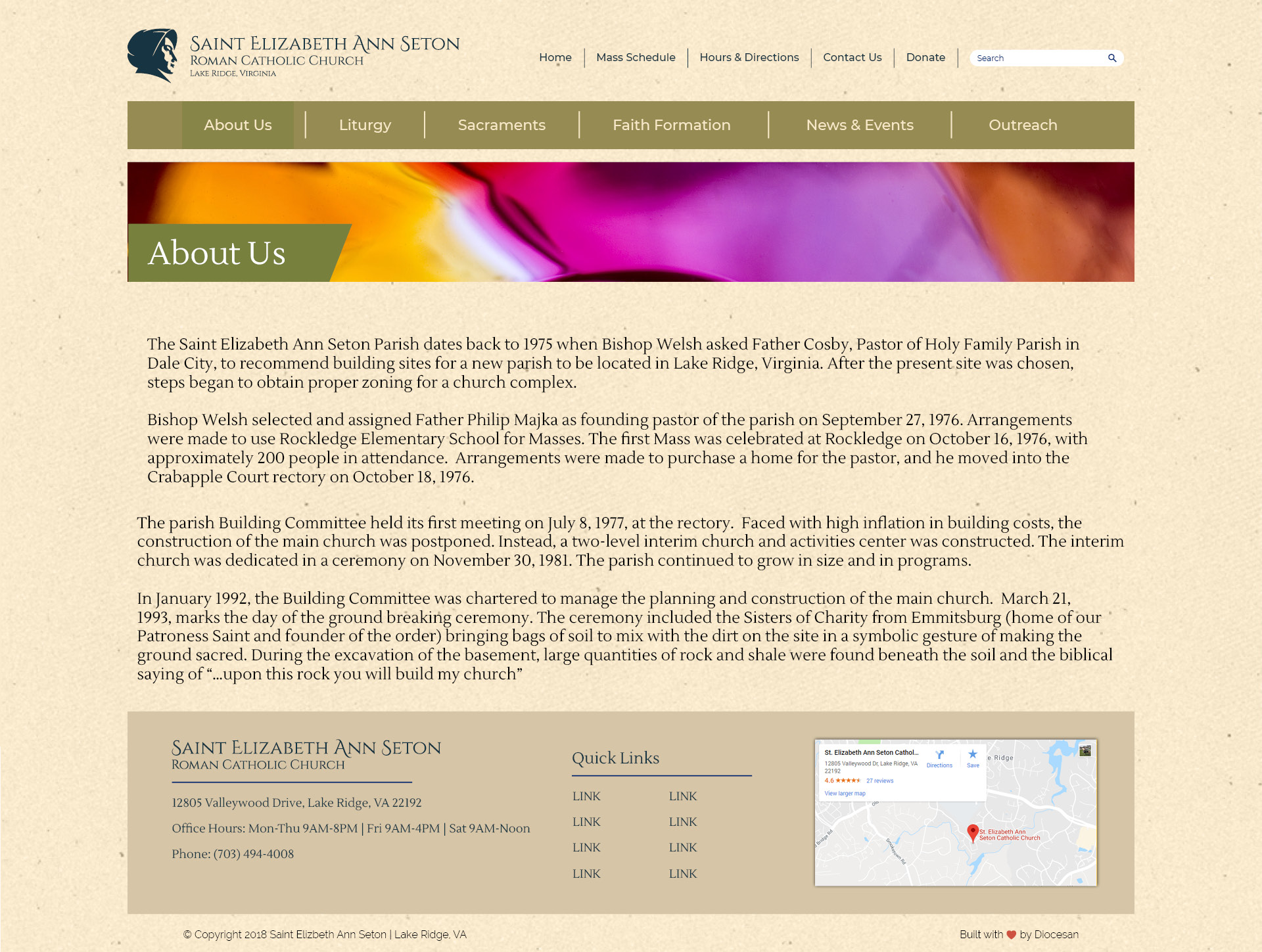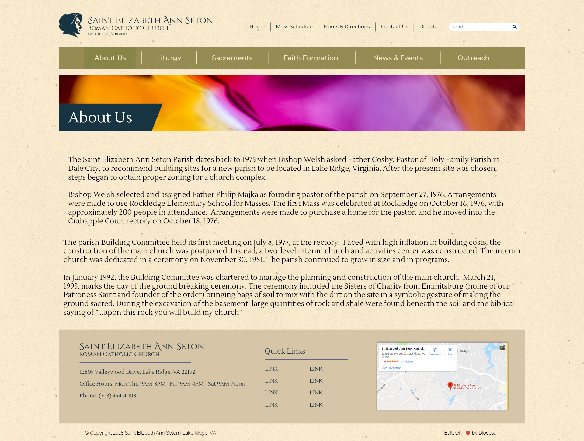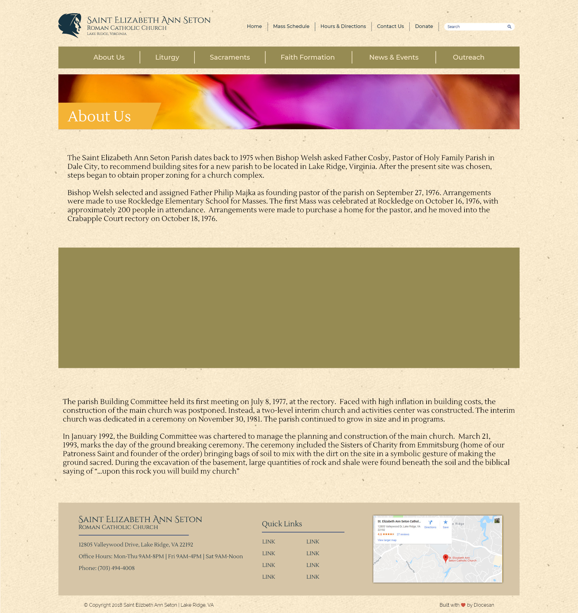 3. For the “ABOUT US“ tab in the body, please use the same color as the ‘my parish app’ box on the main page. Can you also try it in the blue color? Would like to see which looks best.