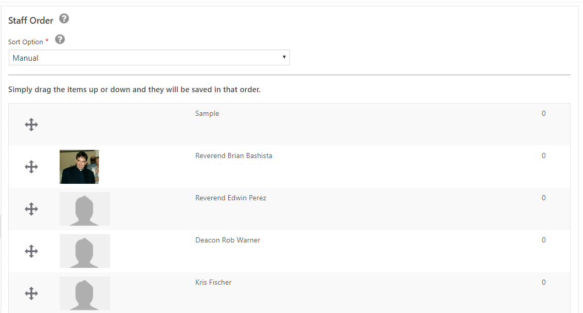 How do I change the order of the staff displayed? Also, do you have a female silhouette?