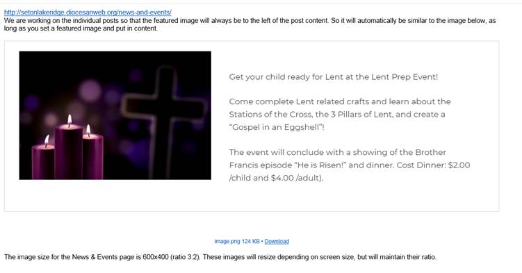 * For the photo gallery in parish media, please use the image header for these posts as well.