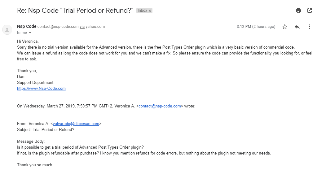 I mentioned it in the email above, but I sent NSP Code a message to see if there is a way to get a trial period or a refund. I will keep you posted,