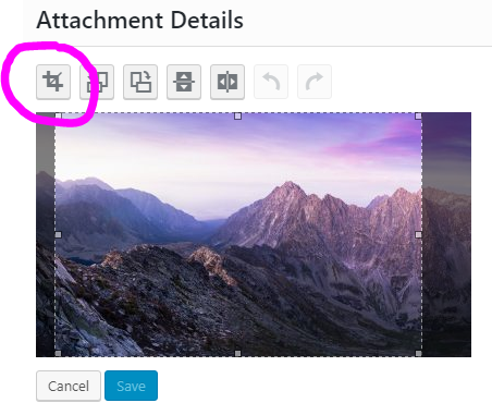 NOTE: Cropping an image in the media library will crop ALL instances of the image on your website. The image can be restored back to the original image, if needed.