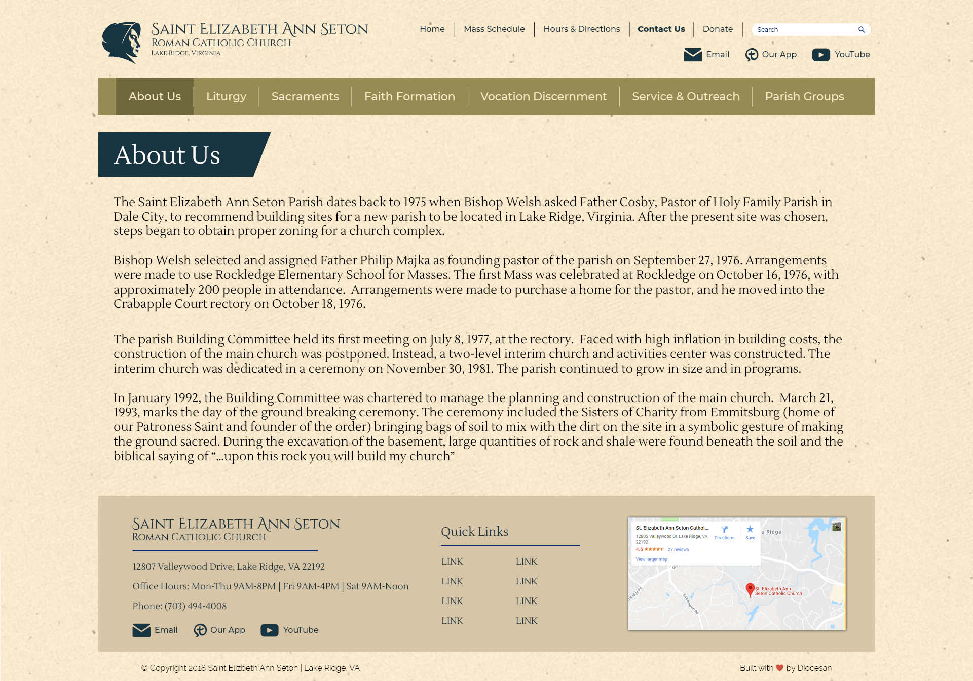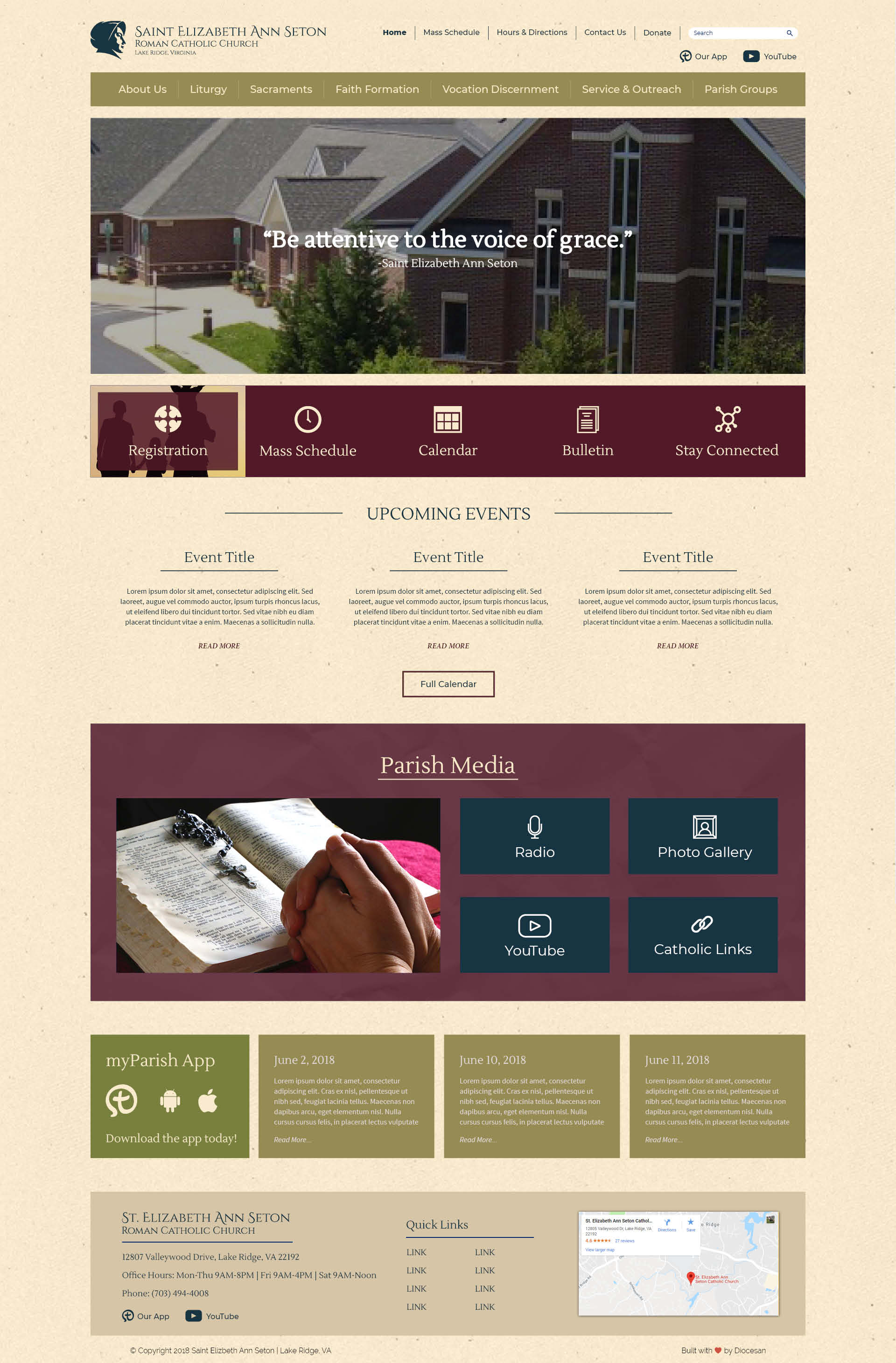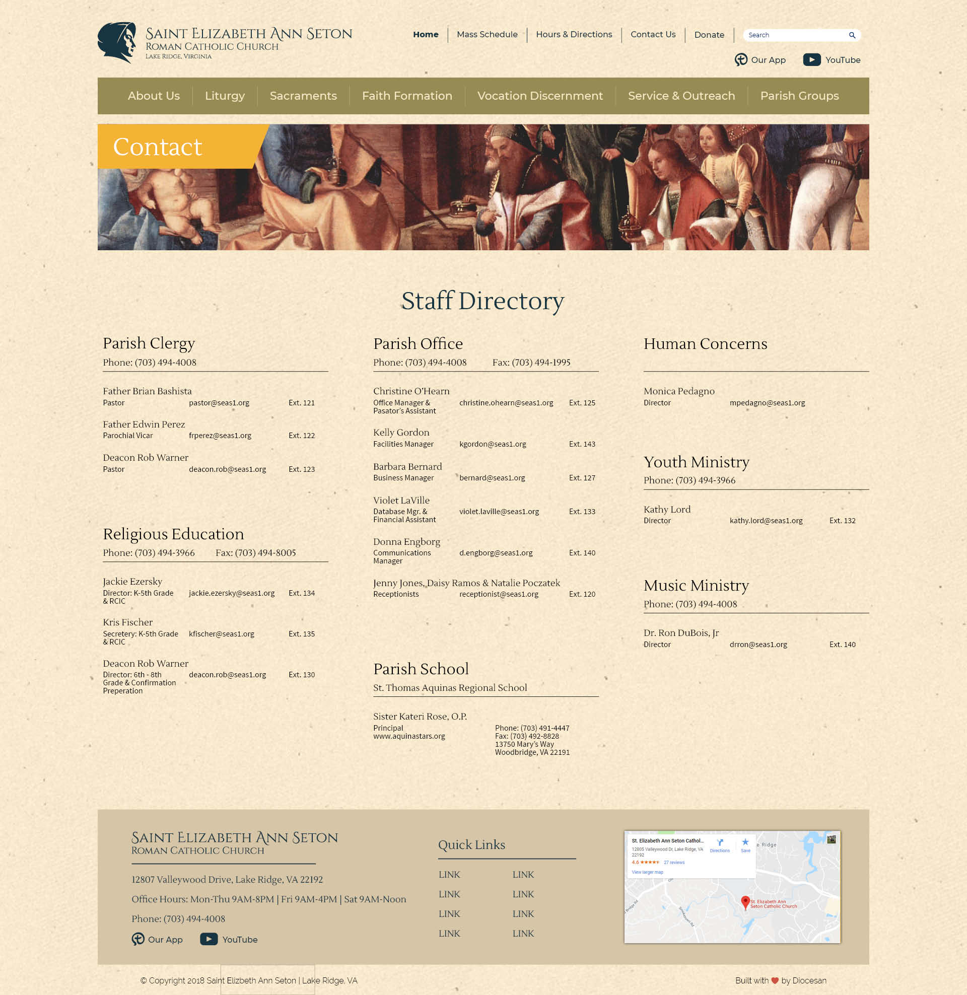 6. At the top of the main page, please align the text “Saint Elizabeth Ann Seton” to the top of her bonnet. That is, the top of the letter “S” should be aligned with the top of her bonnet. Adjust the sub-nav items and social media icons accordingly.