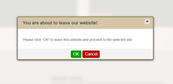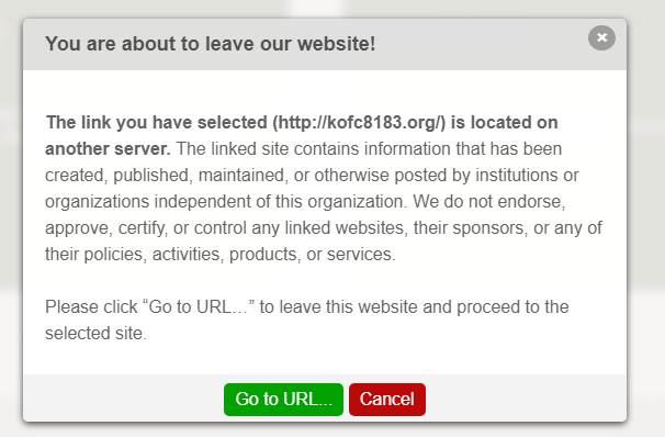 - I was able to change the "Go to URL..." text to "OK" on the exit notification, and also shorten the text in the box. Let me know if that is how you'd like it to appear. It will also now open the page in a new tab.