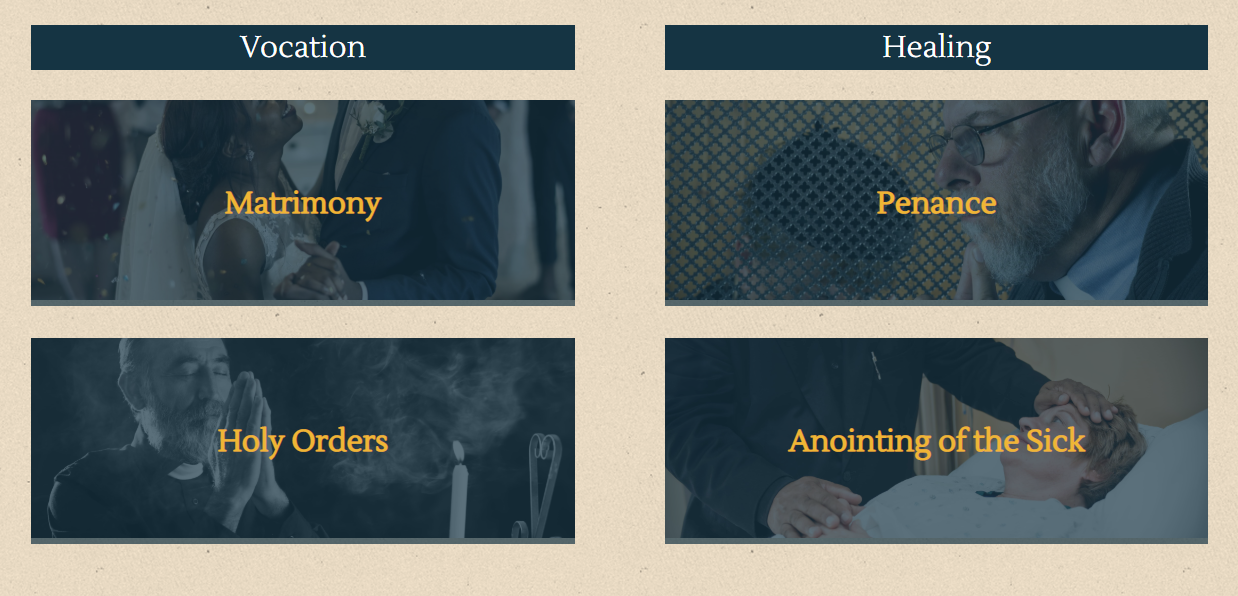 - On Sacraments page, swap Healing - Vocation columns with one another.