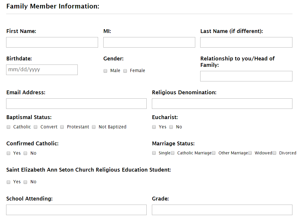 Veronica asked that I work on a registration form similar to the Holy Spirit parish site in Grand Rapids (https://www.hsparish.org/about-us/join-our-parish/)