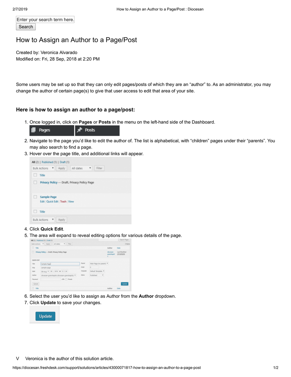 Also, I have created a page on your website that allows you to submit a request for a new user or a user role change. It is only visible to logged in users and Diocesan will only accept changes from someone that is currently a Parish Administrator .