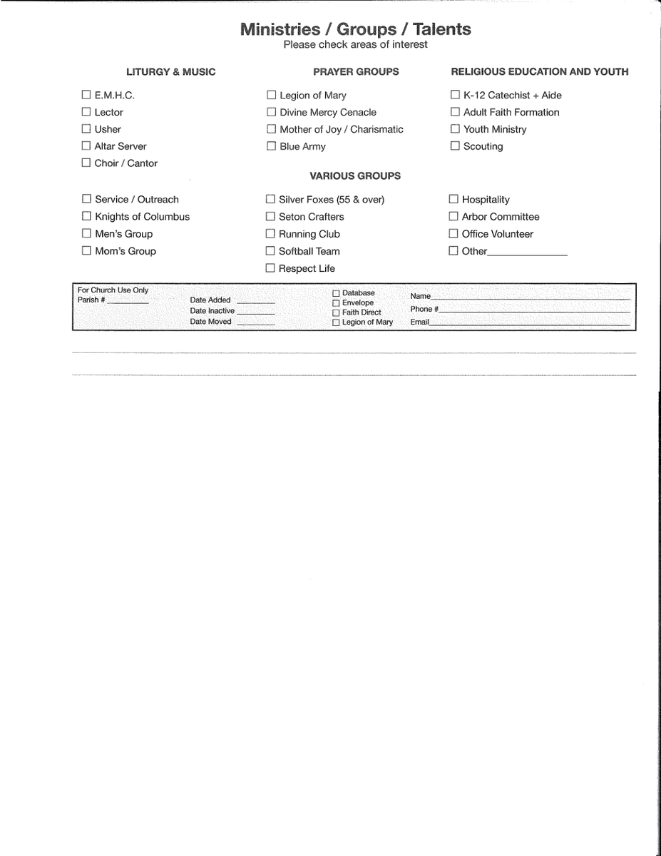 For the ministries/groups/talents, can we make the choices for each group go vertically rather than horizontally? Thus it would look something like the registration card that I sent earlier?