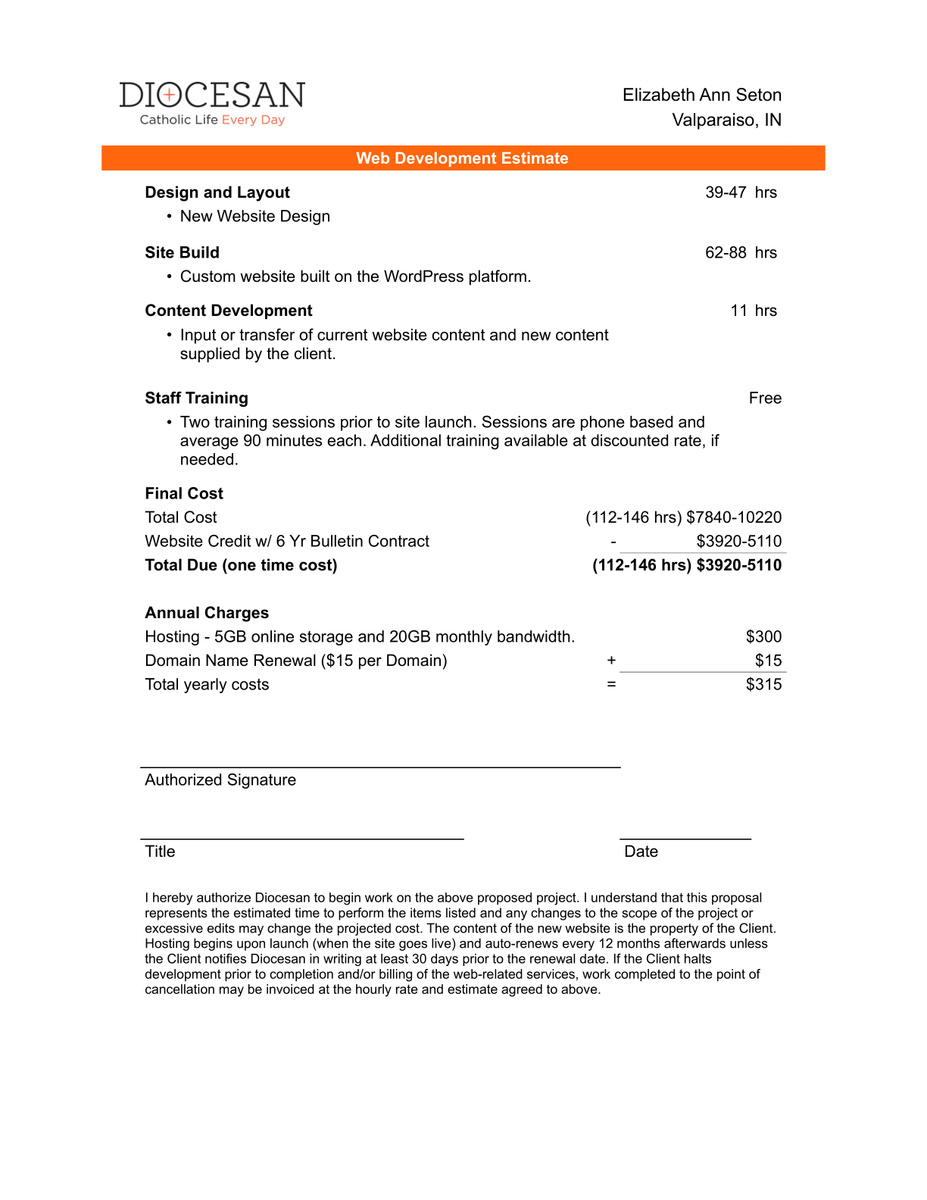 It has been a couple of weeks since I sent over the proposal for a new parish website.