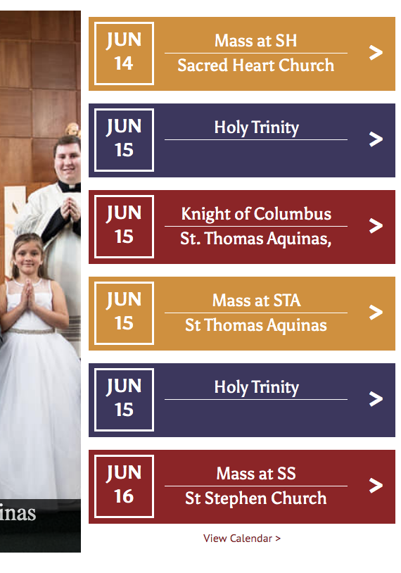 2. My guess is that the Holy Trinity item was duplicated because it reading it as an event that starts on June 15 and lasts two days, meaning there are two days of events that both start June 15. I will double check with the plugin's settings & options to see if we can update this.