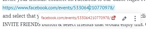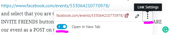 ITEM 4: I also created new Website News & Events posts for each of the 2 above events. In the description of the event I ended with a link to our Facebook Event, so they could connect promote it on Facebook. The link works correctly, but it is not opening a new tab to display it, even though it shows the symbol for the link to open in a separate page.