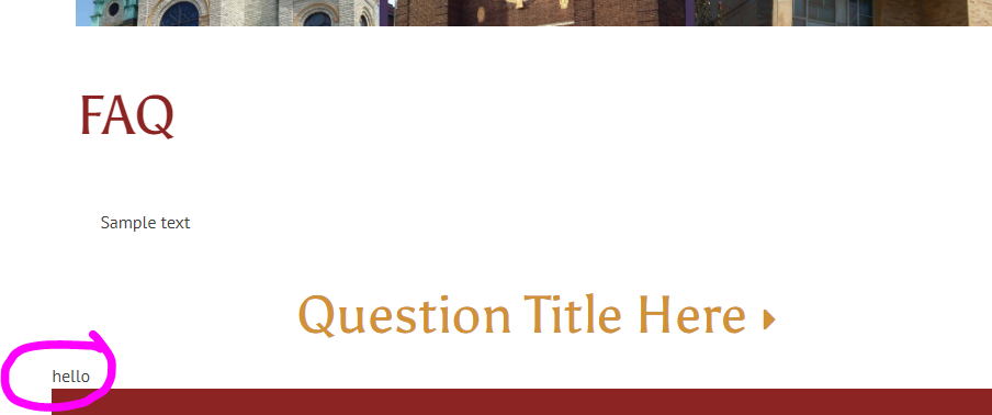 From the list: Build ✔ Accordion Template - Update title to H5 & remove "hello" from template Veronica A. added this on Jun 11, 2019 Completed Jun 12, 2019 by Kyle B. Assigned to Kyle B. Notes https://epiphanyofthelord.diocesanweb.org/faq/ image.png 63.4 KB • Download Comments & Events Kyle Brown completed this to-do. Jun 12, 2019 at 4:41 PM