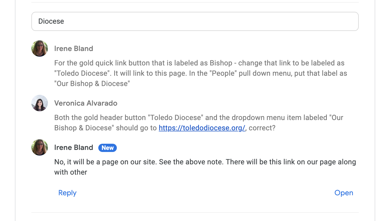 Nothing will link to the Toledo Diocese Website except for the Quick Links in the footer. Do they want a link to the Diocese from the "Our Bishop & Diocese" page on the dev site?
