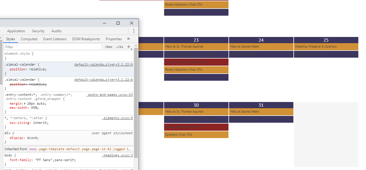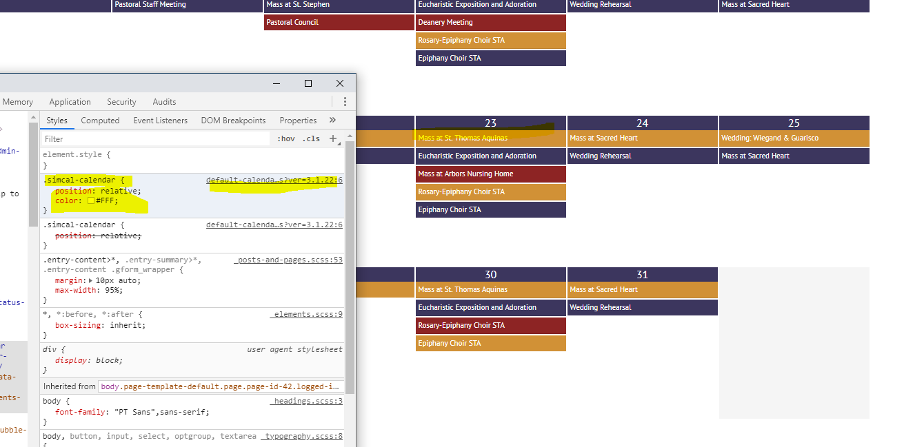 Color needs to be changed on the Calendar Page: https://epiphanyofthelord.diocesanweb.org/calendar/ and the homepage.