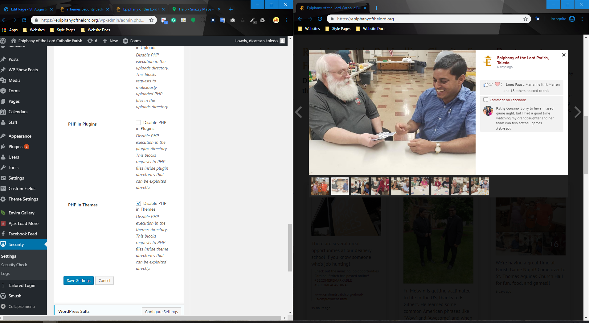 I already went through the Ithemes Security Plugin as much as I could to see if there was anything that would be an issue there. So, it may be the .htaccess file or some other thing on the server that is blocking something in number 3 there.