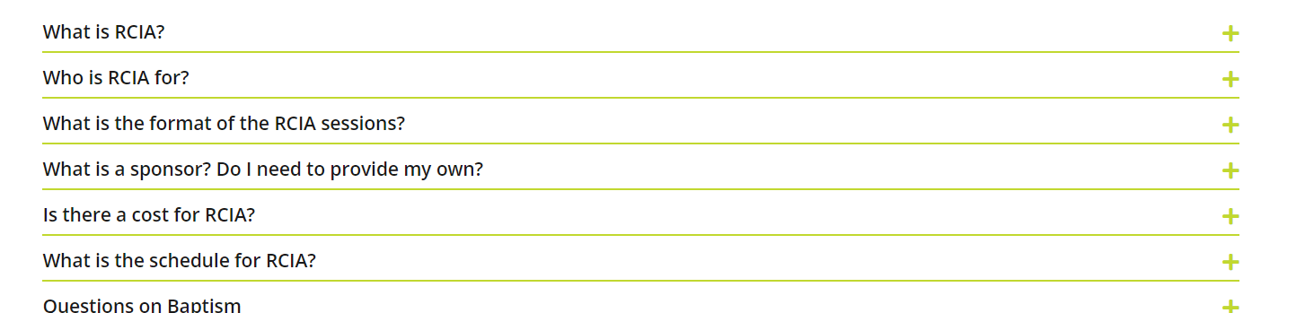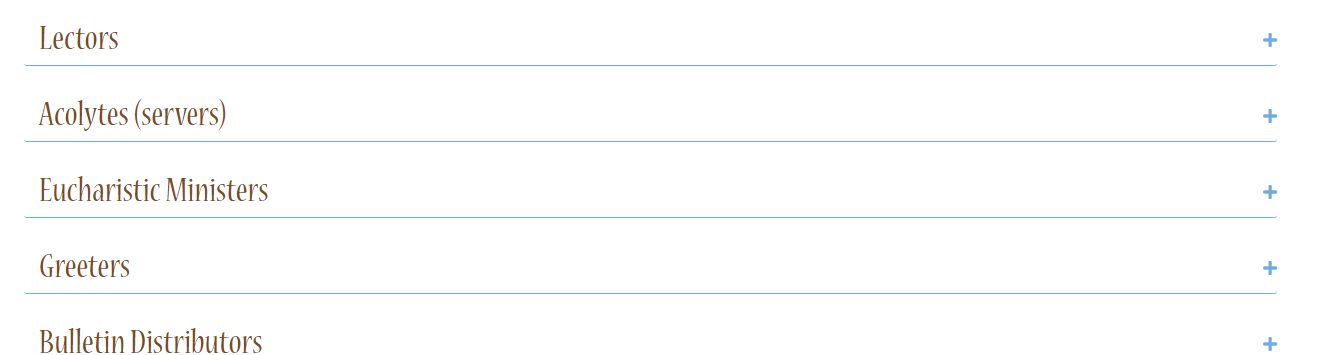 - Styling should be H5 for the title and open/close style should be similar to Brendan Hilliard or Francis de Sales Cincinnati, but with #3C365E purple lines below.