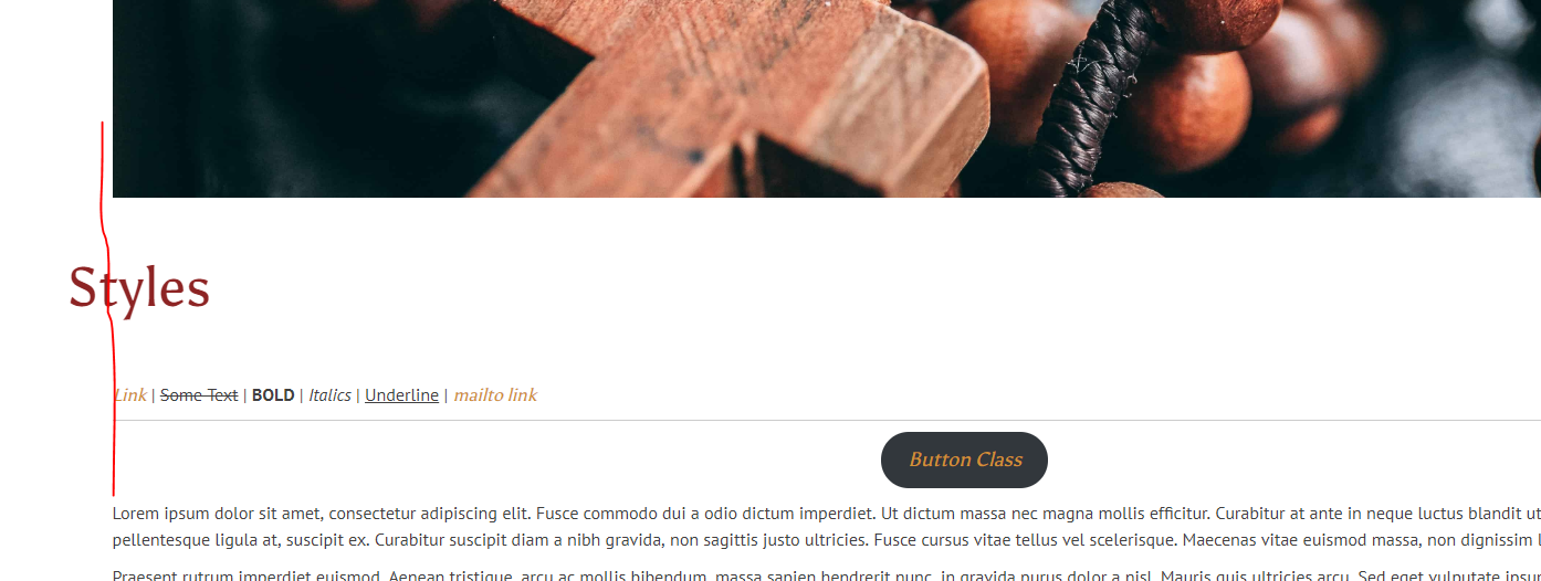 Page Title Should be inline with photo. Width-95%, Margin 50px auto; Seemed to work, plus that is what the image does.