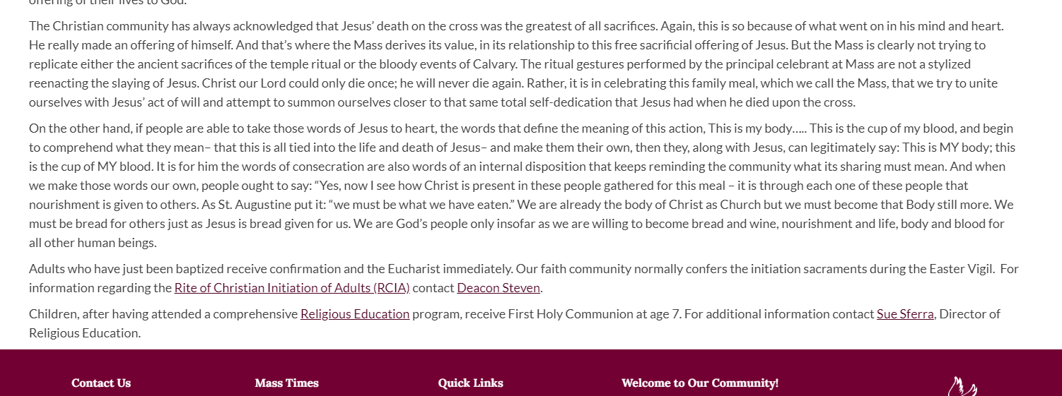 46 pixels in the proof, I know that they have the stay connected blocks, but could you do a negative margin if we are doing those stay connected blocks. Otherwise, there should be more margin between the footer and the content. Thanks. Too Close. https://espiritusanto.diocesanweb.org/church/life-in-christ/first-communion/