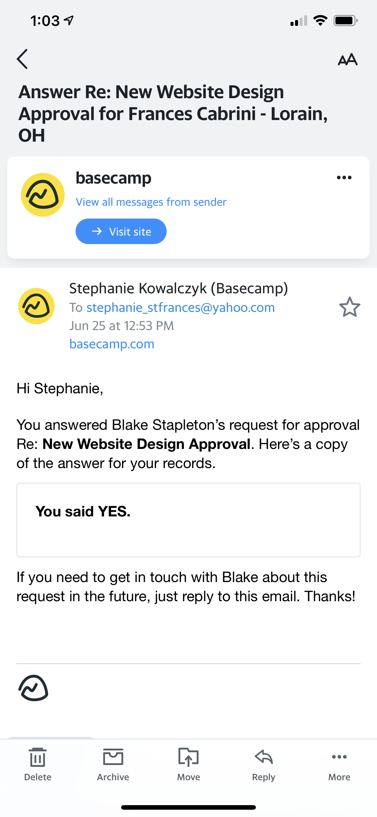 | View all your conversations about Frances Cabrini - Lorain, OH in Basecamp. |