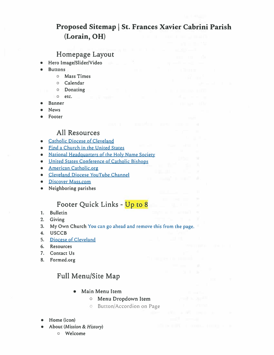 Thank you for choosing Diocesan and we are very excited to work with you on creating a new website for you and the people of St. Frances Xavier Cabrini Parish.