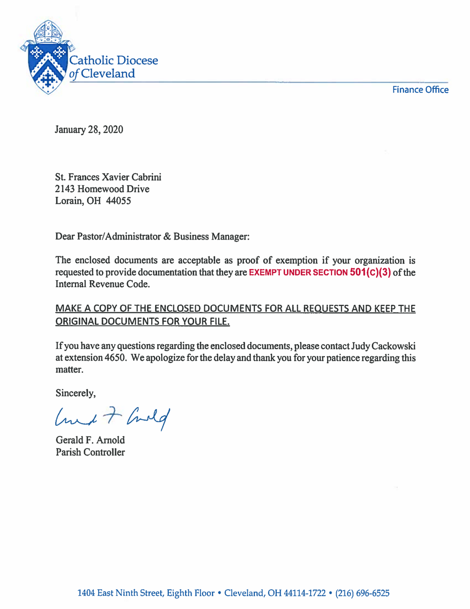 - St Frances Xavier Cabrini's 501(c)(3) Group Exemption Letter - FEDERAL ONLY