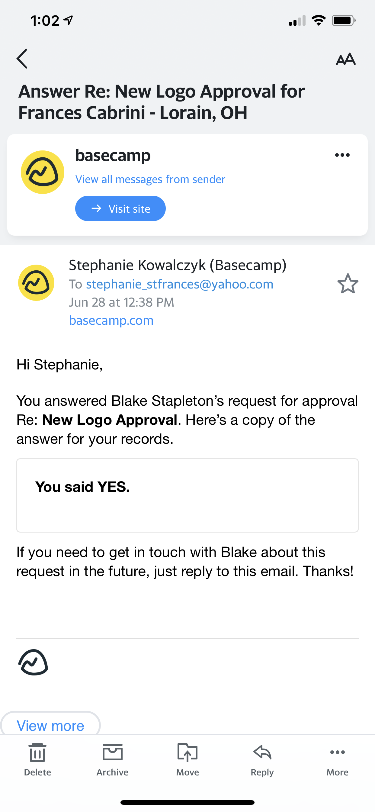 I received your email. I wanted to send the email through our Basecamp project management software so all correspondence was together and accessible by the team.