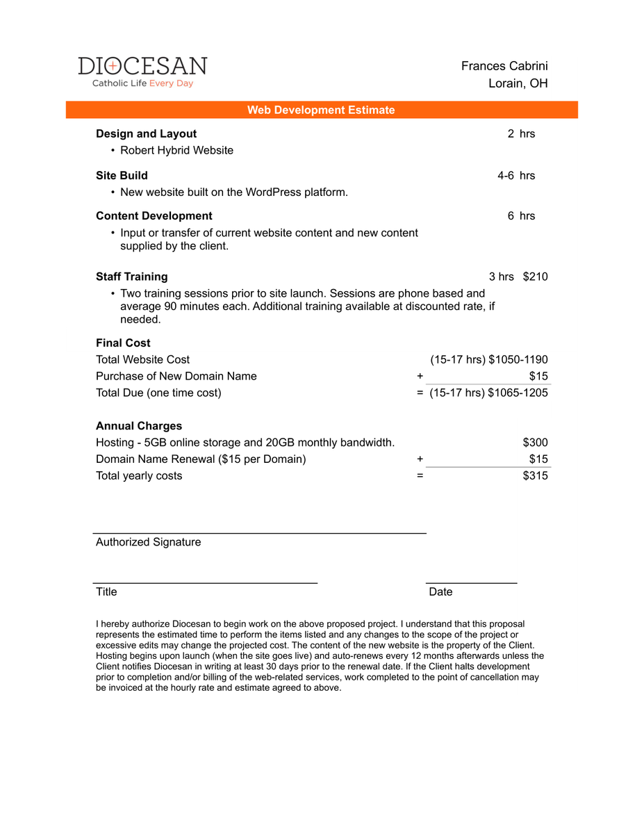 During the Deep Dive conversation, it was determined the Joseph Hybrid Site will be the foundation for your new website. After we apply your branding, fonts and colors, and content you will have a unique website that showcases St Frances Xavier Cabrini.
