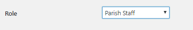 The user role "Parish Staff" is created. When adding a new user, be sure to set them as "Parish Staff" (as seen below)
