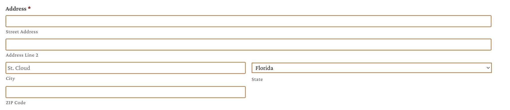 * On the Parish registration page in the address area can you please delete the default "St Cloud" City from the address and the default state Florida from the list. Father would like people to type it from scratch. States can still dropdown... but don't have it auto-filled