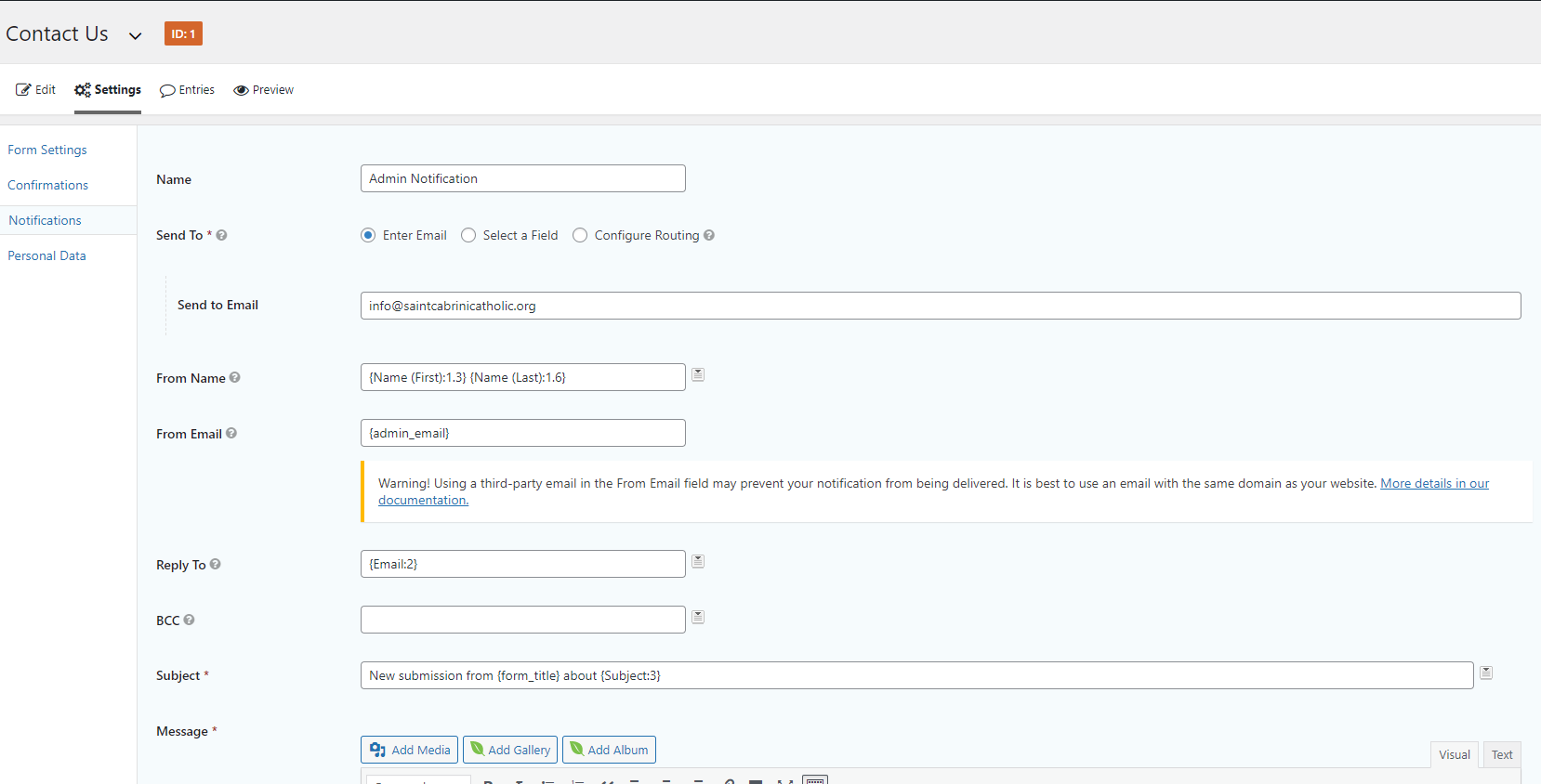 ✔ Add Fr. Charles to Contact Us notifications