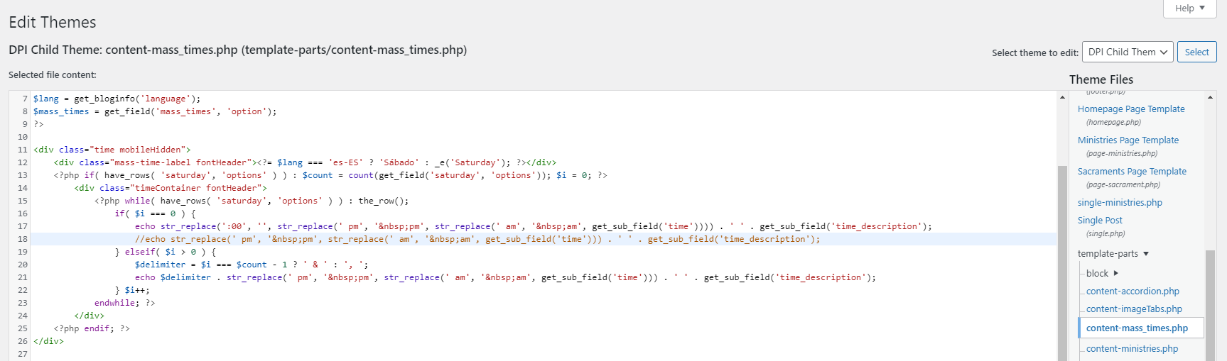 They wanted the 5:00 PM Saturday Mass time on the homepage to say 5 PM, so I changed the code and left the original as a comment below it. Just added another str_replace in there. What's another str_replace in that mess lol.