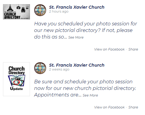 Auto-publishing from your website would mean that you would have to update your Facebook API Access Token every 60 days via Facebook's developer console & API application form. Diocesan could set up the initial API Access Token, but every 60 days after that, it would be up to you to complete or pay the $50/hr support rate for one of our support team members to do it for you.