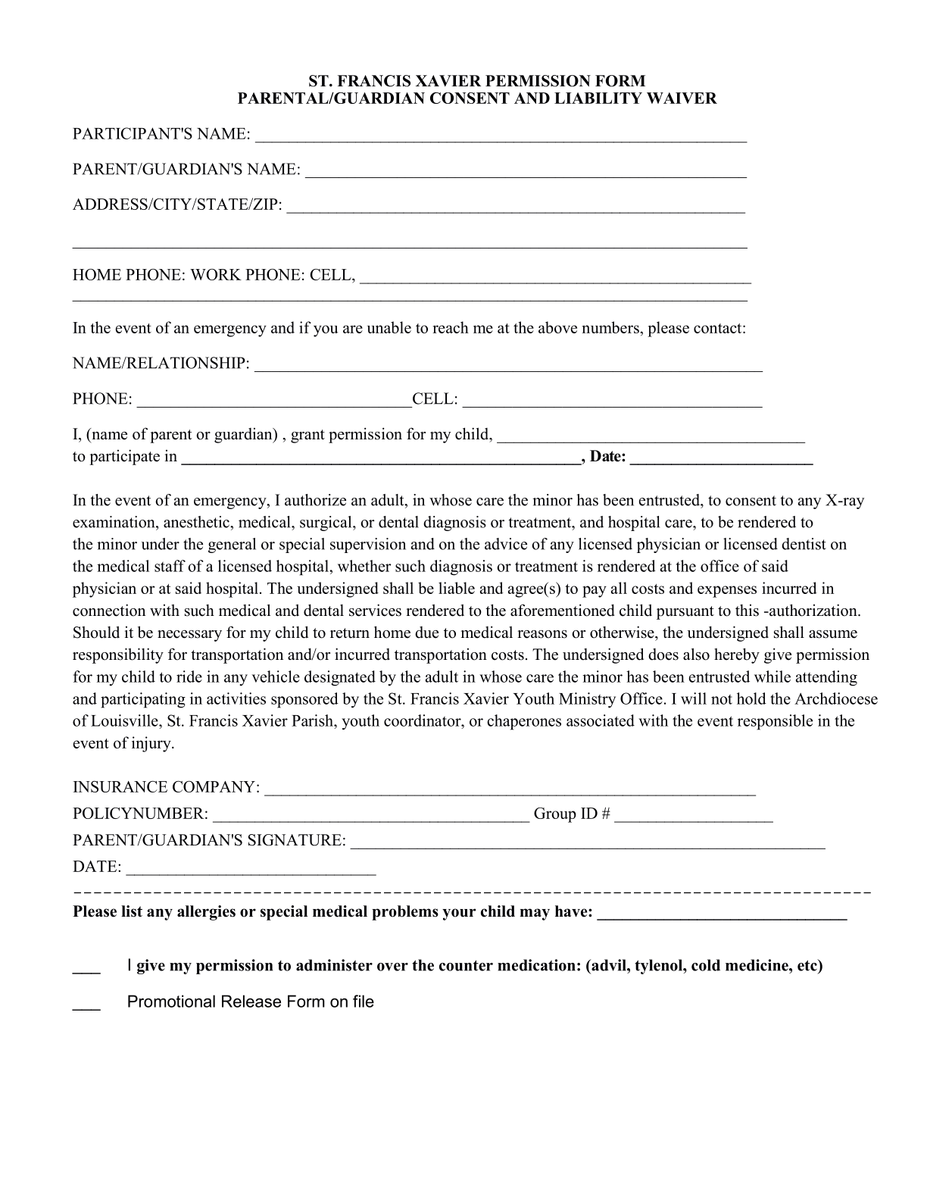I’ve sent you the volunteer background form and ACH withdrawal forms already, but let me know if you still need them. Attached are four more. I still owe you the wedding guidelines, new member/parishioner form, and generic permission form.