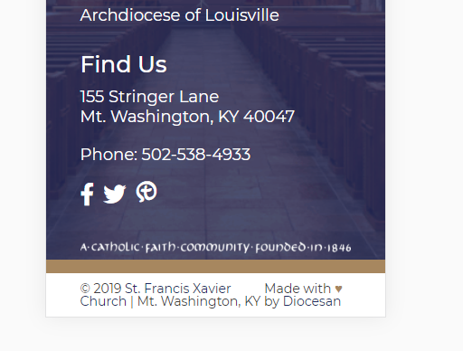 It's a little tight down at the bottom there. St. Francis.... should come first then a little space and then the Made with ♥ by Diocesan stuff. Thanks