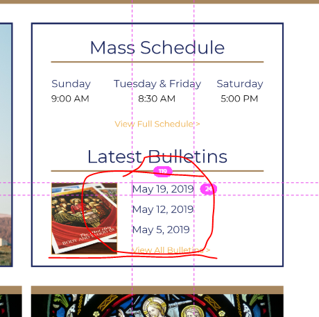 ✔ Homepage - Mass/Bulletin Box Bulletins Alignment/spacing between days