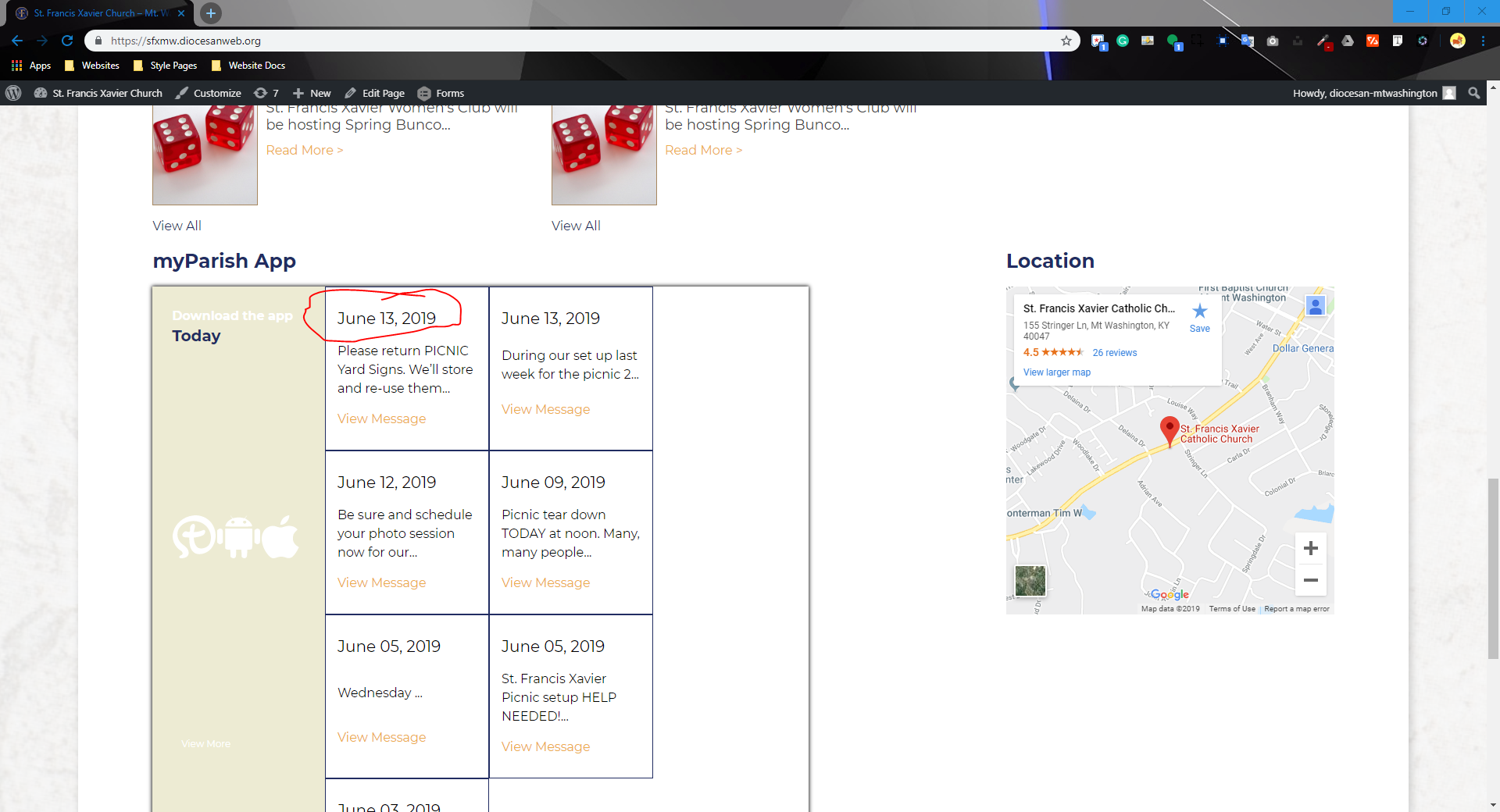 myParish App Date change from black to Purple #212C62, if you can. I believe in you.
