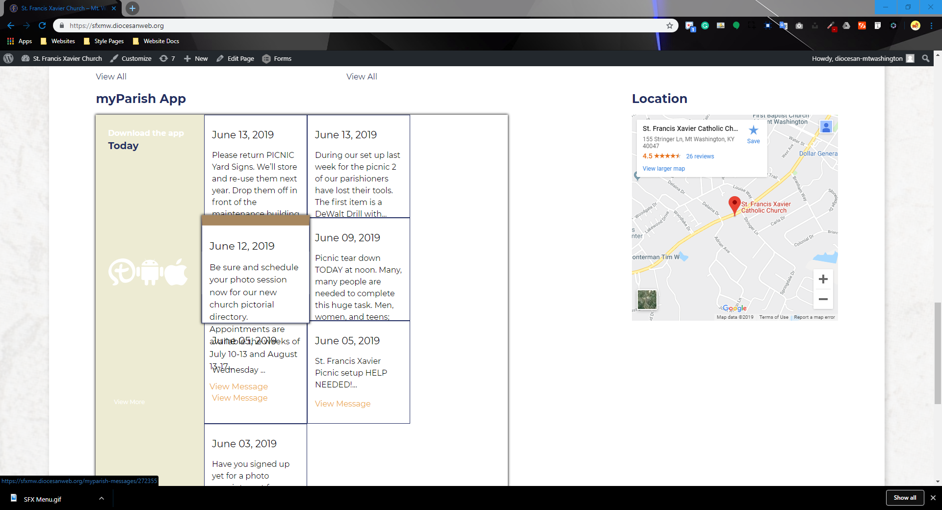 ✔ Homepage - myParish App Section, Download Box color, size, shape, icons, etc.