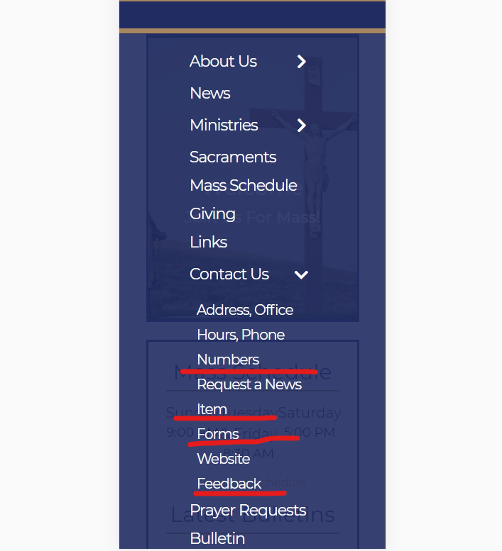 There is no proof for this, but coming user's perspective how would they know that "Address, Ofice Hours, Phone Numbers" was all one item or "Request a News Item" quickly and easily. Is there a way to fix this, maybe adjusting spacing between the elements and the element itself? Open to suggestions.