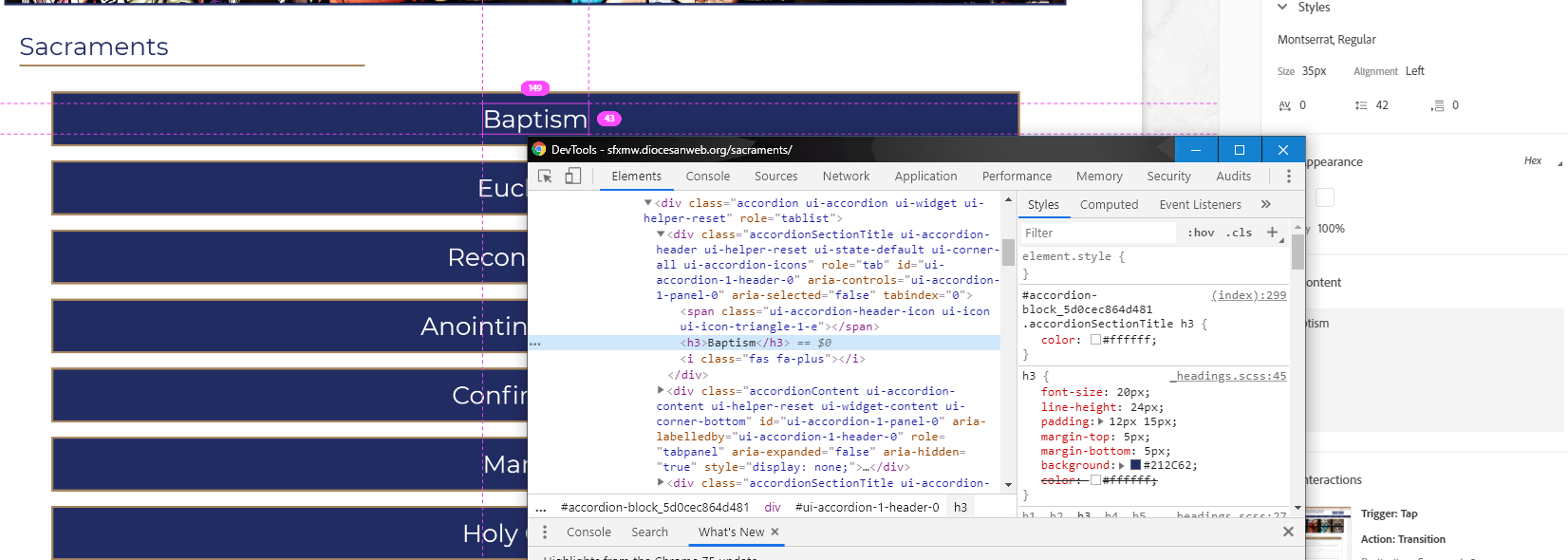 ✔ Page - Sacraments Page Accordion Headings Sizing and font-weight off