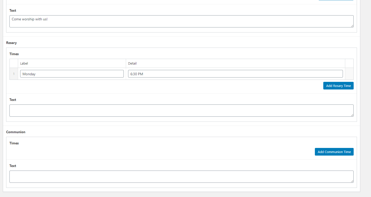 ✔ Mass Times/Theme Settings - Labels should be conditional if there are rows in the repeater