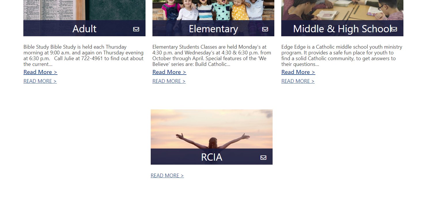 From the list: Build ✔ Ministries Template - Multiple Read More Links Cody A. added this on Apr 22, 2020 Completed Apr 23, 2020 by Kyle S. Assigned to Kyle S. Notes https://stgabrielparish.diocesanweb.org/faith-formation-education/ image.png 505 KB • Download Comments & Events Kyle Sullivan completed this to-do. Apr 23, 2020 at 5:13 PM