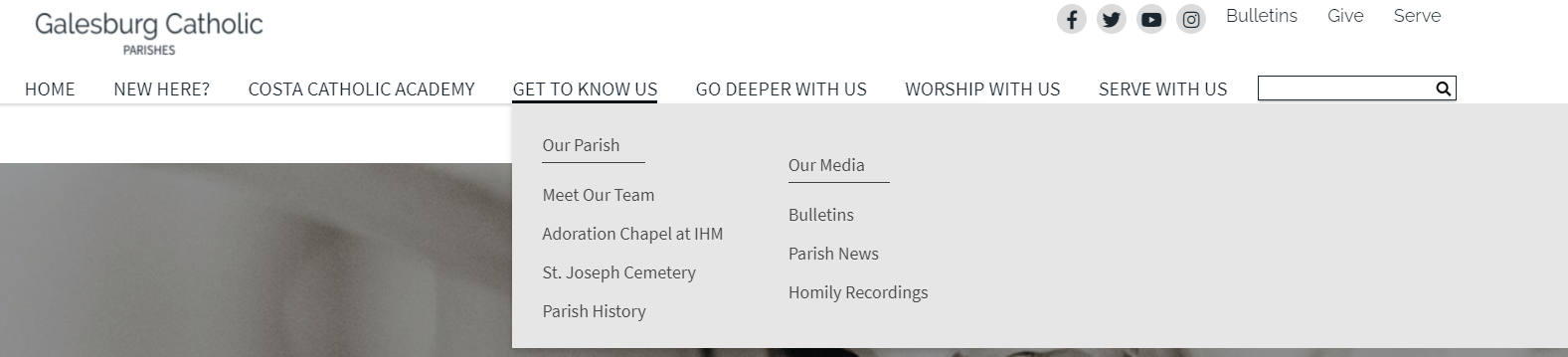 Our Parish heading and Our Media heading should line up on the same line, not have the Our Media heading a space or two below Our Parish. Let me know if this is unclear.