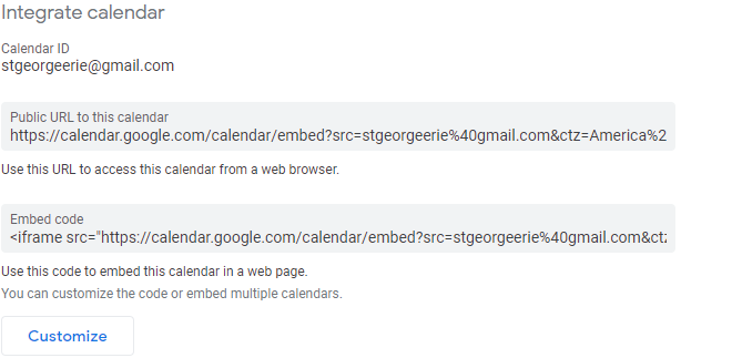 - You will also need to make the Calendar Public if it is not already, you can find how to do that here