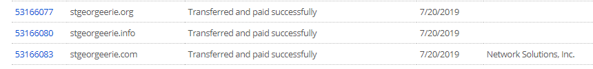 stgeorgeerie.org domain transfer codes below. Sent to John Schroeck who forwarded them to me. Gretchen