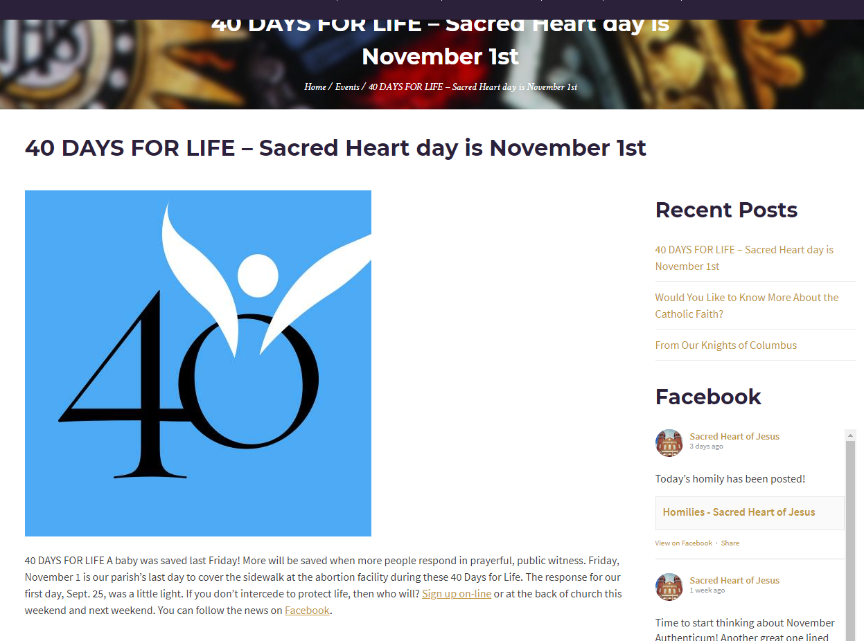 Individual post will follow the look of Sacred Heart GR. They want a Facebook feed on the side. Omit the recent posts