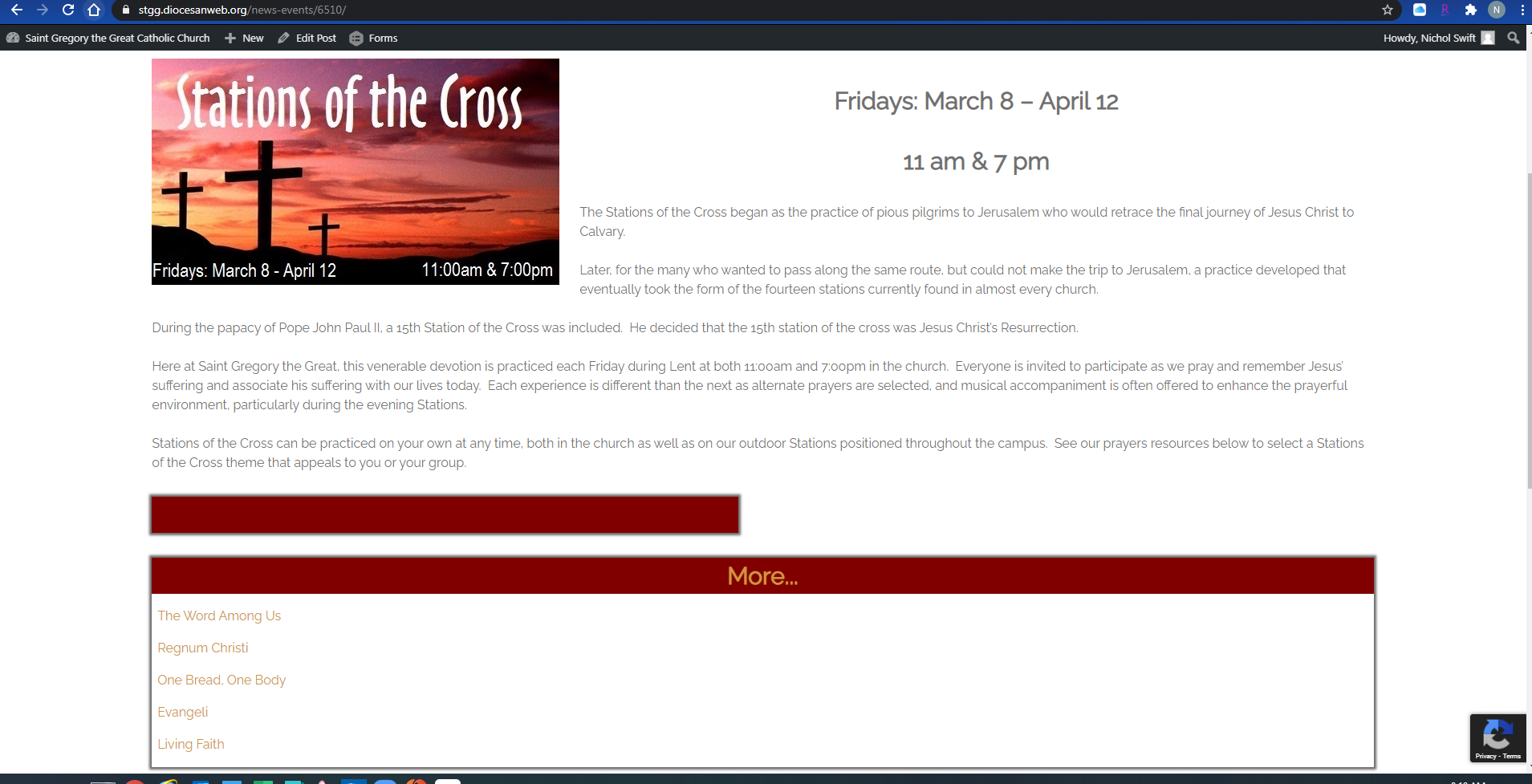 I noticed that the "more" section and another little red bar are appearing on all the news & events posts. Could you take these off please? The more section was only for all the RSS feed pages - those look perfect.