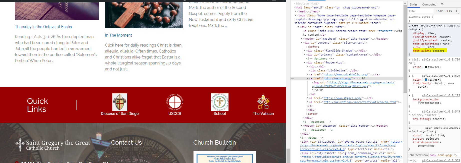 Need to add the text-align center bit to the place highlighted. It is rather funky without it and doesn't look finished. Thanks.